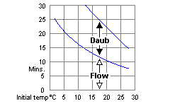 4. If using Cassini's for normal casting, pour out the mixture gently and as near as possible to the mould to avoid splashing and air entrainment and, if possible, rolling the mould around and tapping it very firmly to ensure a thorough coating, etc. if using Cassini's for daubing or spreading on to a framework, existing plaster, etc. keep an eye on the mix to determine when it has made the transition to the daub stage, using the graph below only as a general guide.