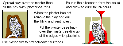 As can be seen, this process is virtually the same as for making plaster moulds - but there are some exceptions: firstly,